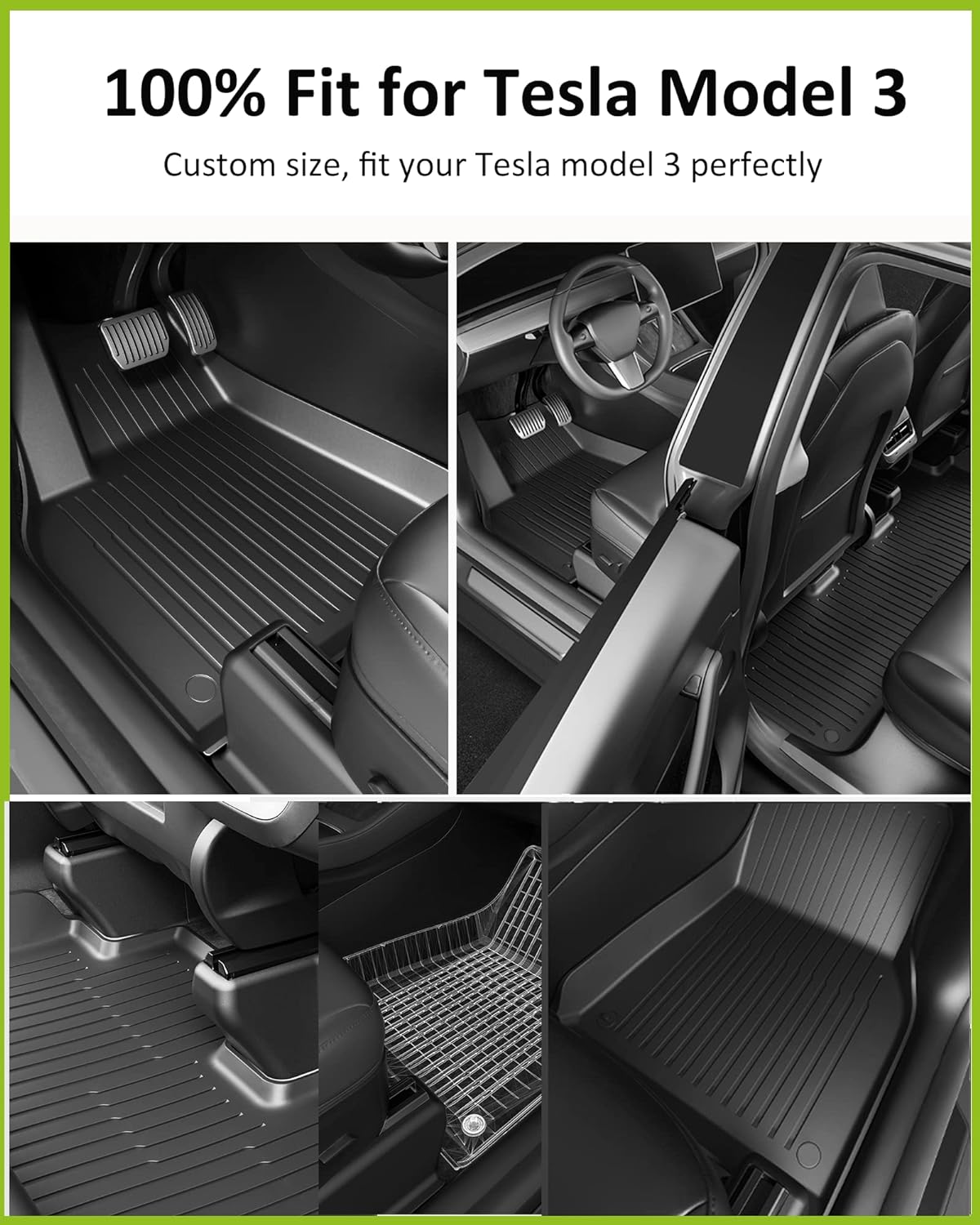 1. Perfectly Designed: Our custom fit floor mats are specifically designed for your Tesla Model 3, ensuring a perfect fit and maximum coverage for your car's interior.